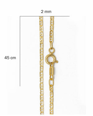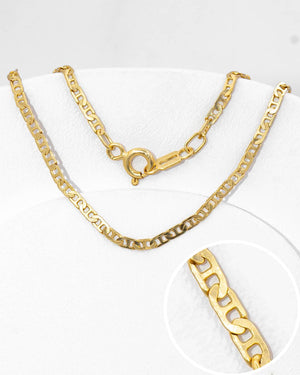 Cadena escalera tallada en oro laminado, medida de 45 cm de largo y 2 mm de grosor.