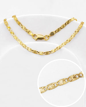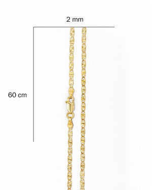 Cadena espejo diamantado en oro laminado, medida de 60 cm de largo y 2 mm de grosor.