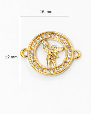 Dije para pulsera arcángel con circones de oro laminado, incluye 1 unidad y garantía de 5 años por cambio de color.