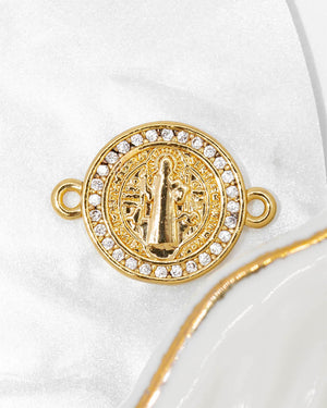 Dije pulsera San Benito con circones de oro laminado incluye 1 unidad y garantía de 5 años por cambio de color.