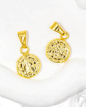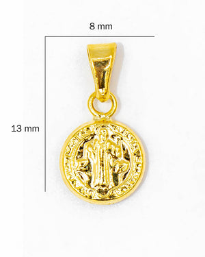 Dije San Benito de oro laminado incluye 1 unidad y garantía de 5 años por cambio de color.