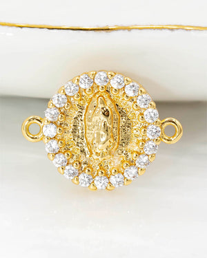 Dije para pulsera Virgen de Guadalupe con circones de oro laminado incluye 1 unidad y garantía de 5 años por cambio de color.