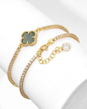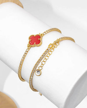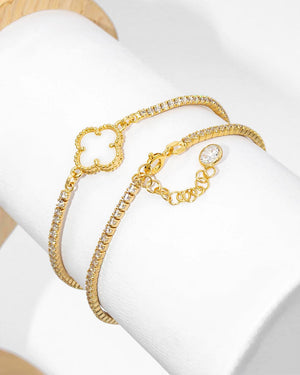 pulsera trébol en oro laminado, Incluye 1 unidad y cuenta con garantía de 5 años por cambio de color.
