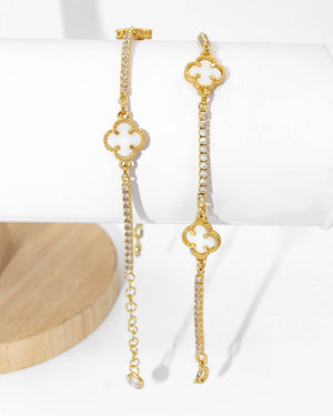 pulsera trébol seguida en oro laminado, Incluye 1 unidad y cuenta con garantía de 5 años por cambio de color.