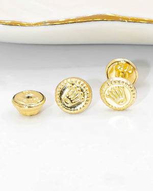Topo corona de oro laminado incluye 1 par y garantía de 5 años por cambio de color.