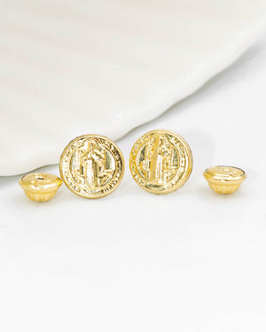 Topo San Benito de oro laminado, incluye 1 par y garantía de 5 años por cambio de color.