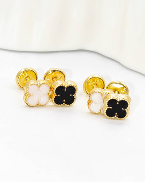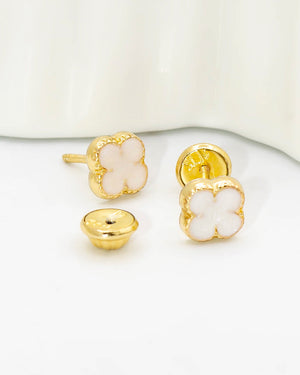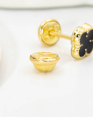 Topo trébol de oro laminado incluye 1 par y garantía de 5 años por cambio de color.