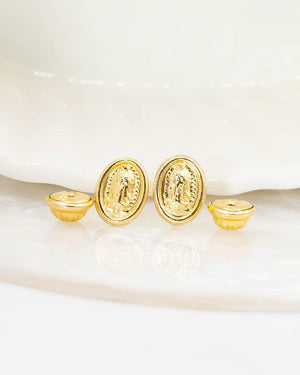 Topo virgen de Guadalupe de oro laminado, incluye 1 par y garantía de 5 años por cambio de color.