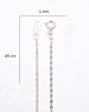 Cadena caracol en plata ley 925, medida de 45 cm de largo y 1 mm de grosor.