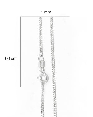 Cadena cubana mini en plata ley 925, medida de 60 cm de largo y 1 mm de grosor.