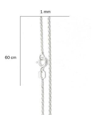 Cadena lazo en plata ley 925, medida de 60 cm de largo y 1 mm de grosor.