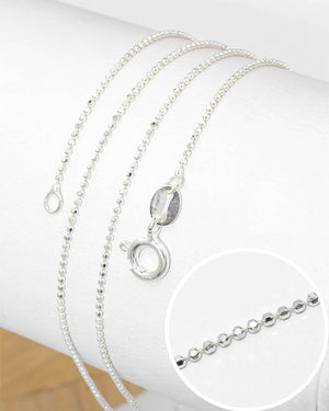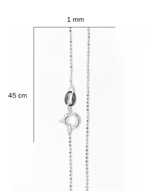 Cadena militar diamantada en plata ley 925, medida de 45 cm de largo y 1 mm de grosor.