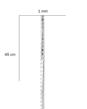 Cadena veneciana en plata ley 925, medida de 45 cm de largo y 1 mm de grosor.