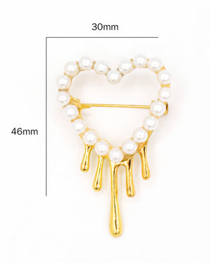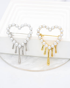 Prendedor de corazón derretido con perlas, tiene baño de rodio e incluye 1 unidad.