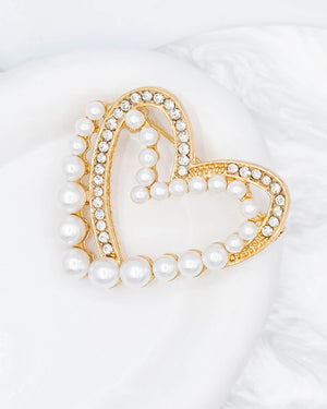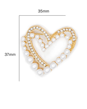 Prendedor de corazón con perlas y circones, tiene baño de rodio e incluye 1 unidad.