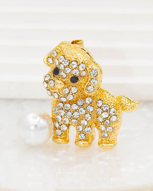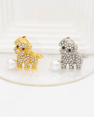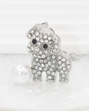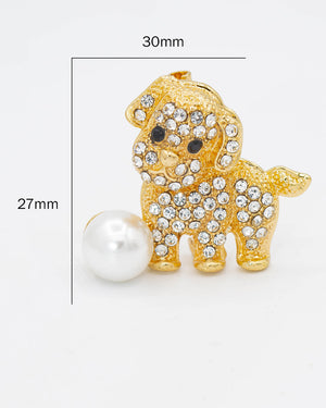 Prendedor de perro con circones, tiene baño de rodio e incluye 1 unidad.