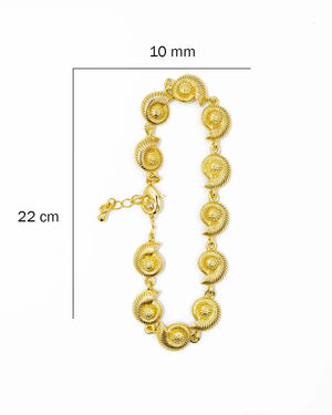 Pulsera caracol seguida, tiene baño de rodio e incluye 1 unidad.