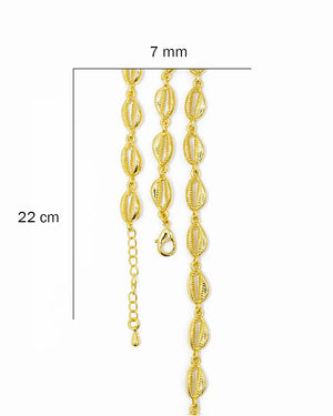 Pulsera concha seguida, tiene baño de rodio e incluye 1 unidad.