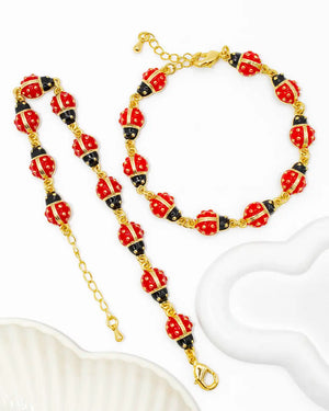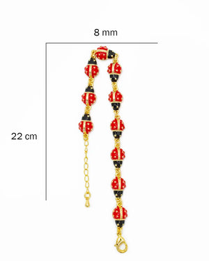 Pulsera mariquita, tiene baño de rodio e incluye 1 unidad.