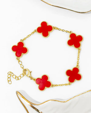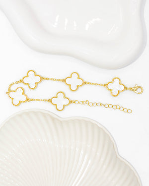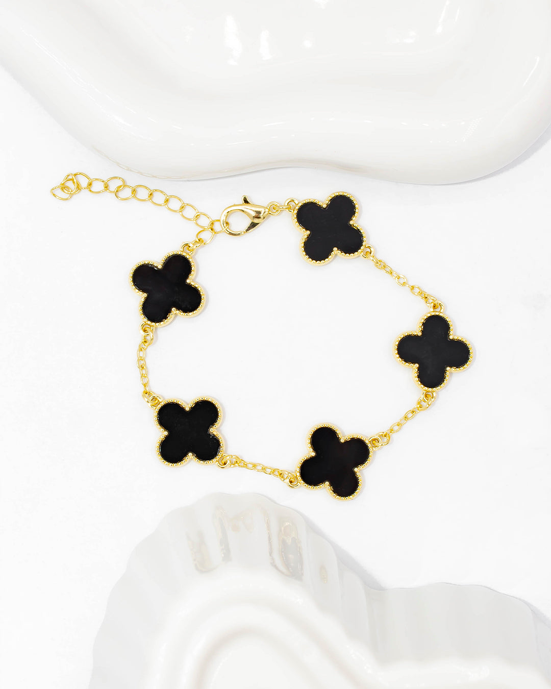 Pulsera trébol, tiene baño de rodio e incluye 1 unidad.