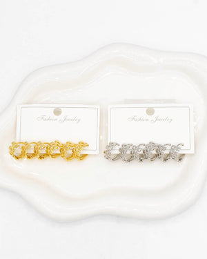 Set de candongas triple, tiene baño de rodio e incluye 3 pares.