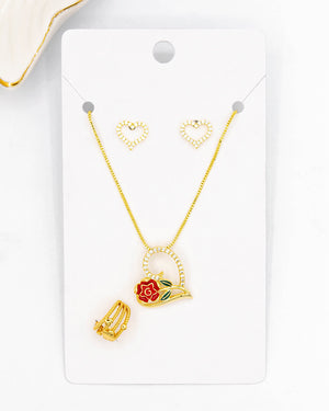 Un conjunto delicado de Sets flor purpura, flor blanca y set de corazón, incluye 1 conjunto.