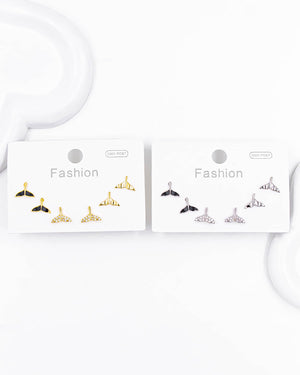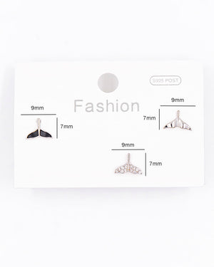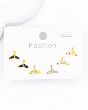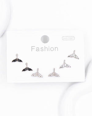 Set de topos cola de sirena triple, tiene baño de rodio e incluye 3 pares.