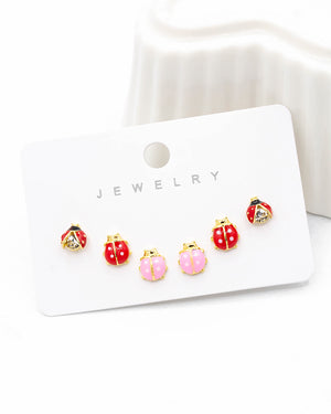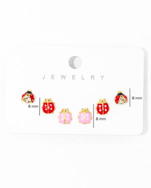Set topo triple mariquita, tiene baño de rodio, incluye 1 unidad.