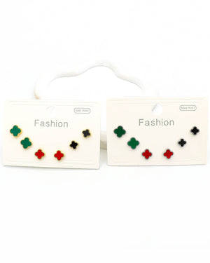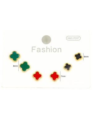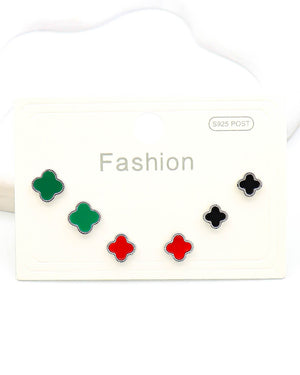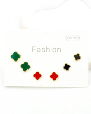 Set triple topo trébol, tiene baño de rodio e incluye 3 pares.