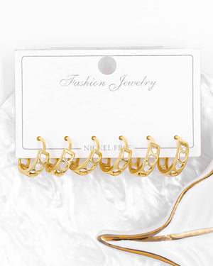 Set triple candonga corazón, tiene baño de rodio e incluye 3 pares.