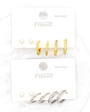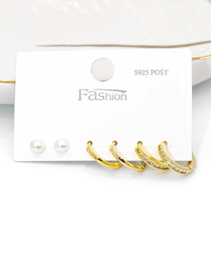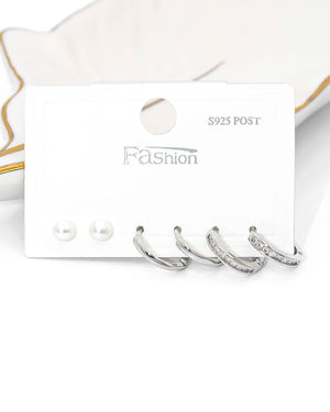 Set de candongas triple y perla, tiene baño de rodio e incluye 3 pares.