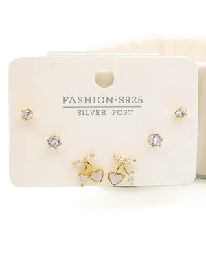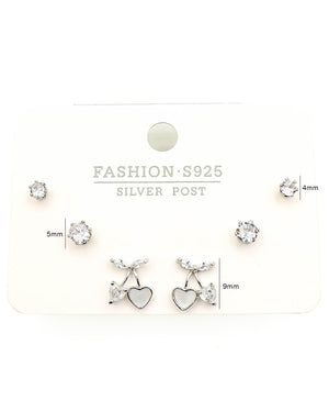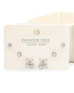 Set topos triple cherry y circones, tiene baño de rodio e incluye 3 pares.