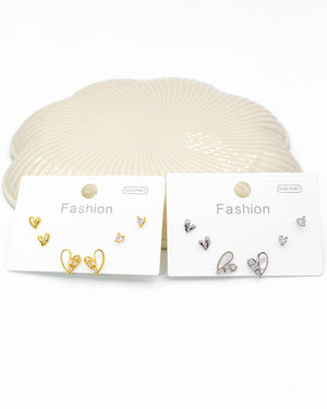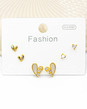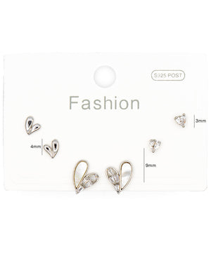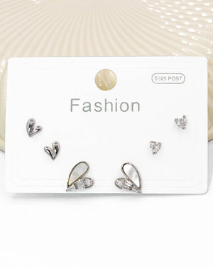 Set de topos triple corazones, tiene baño de rodio e incluye 3 pares.