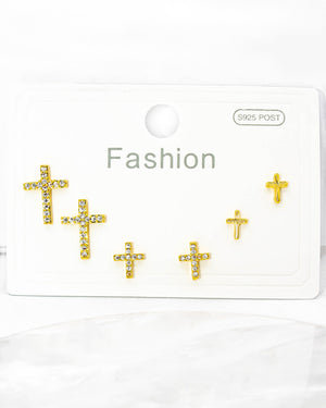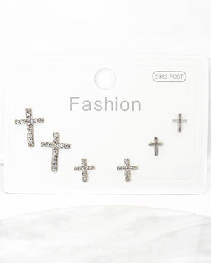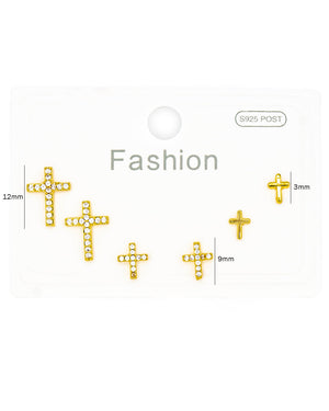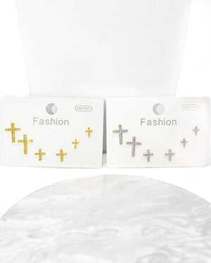 Set de topos triple cruz, tiene baño de rodio e incluye 3 pares.