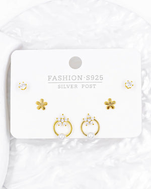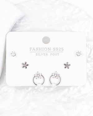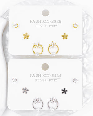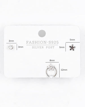 Set de topos triple estrella, tiene baño de rodio e incluye 3 pares.