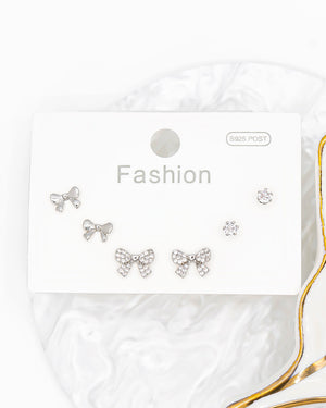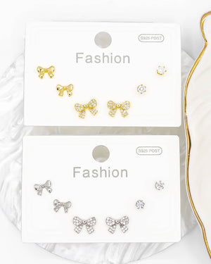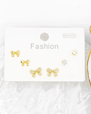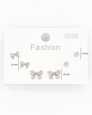Set topos triple moño y circón, tiene baño de rodio e incluye 3 pares.