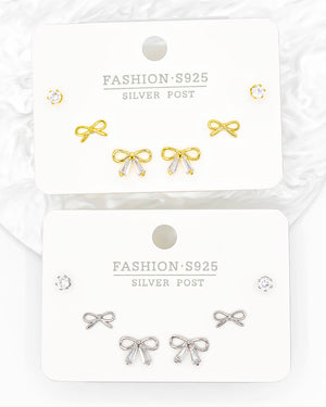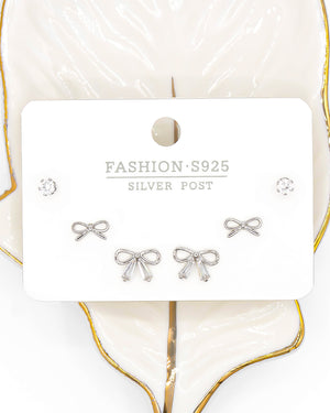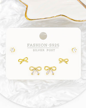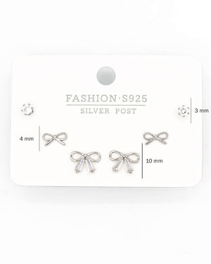 Set de topos triple moño, tiene baño de rodio e incluye 3 pares.