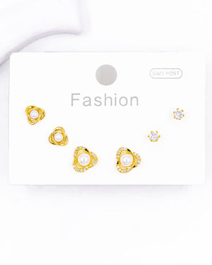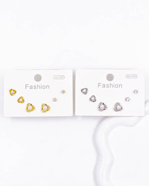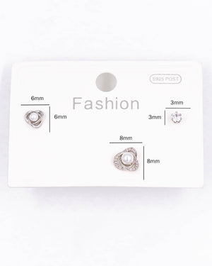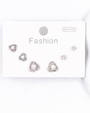 Set de topos perla triple, tiene baño de rodio e incluye 3 pares.