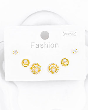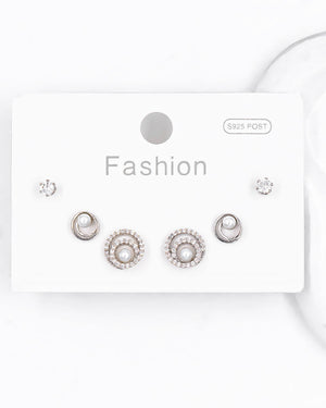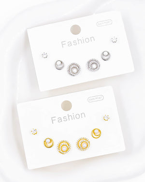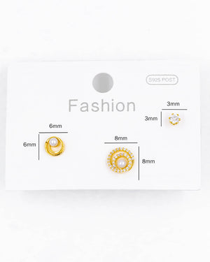 Set de topos triple perla, tiene baño de rodio e incluye 3 pares.