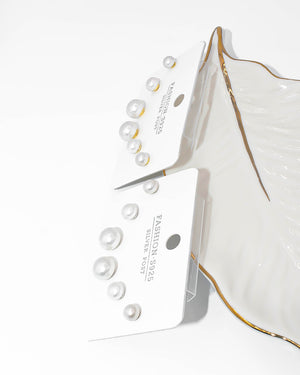 Set triple topo perla, tiene baño de rodio e incluye 3 pares.