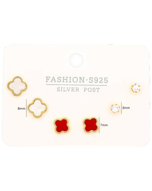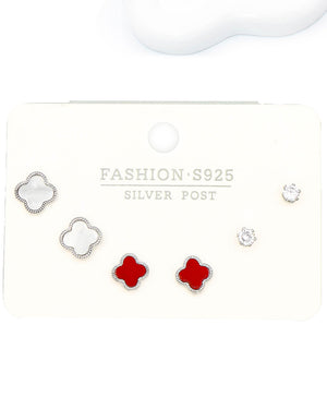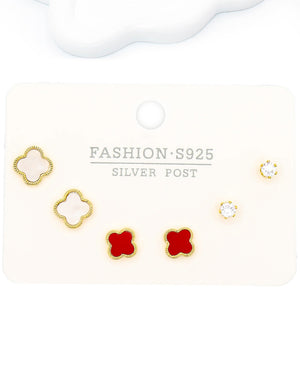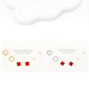 Set triple topo trébol, tiene baño de rodio, incluye 3 pares.