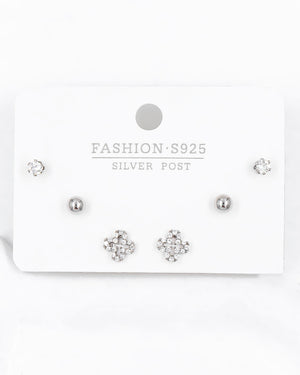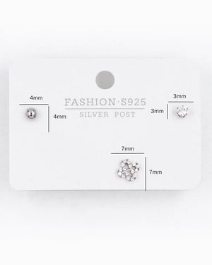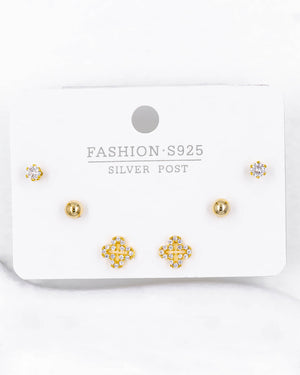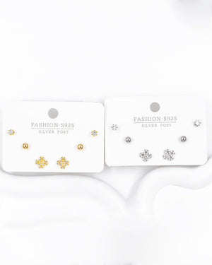 Set de topos triple trébol, tiene baño de rodio e incluye 3 pares.