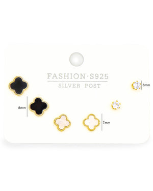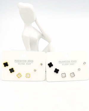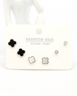 Set topos triple trébol y circón, tiene baño de rodio e incluye 3 pares.