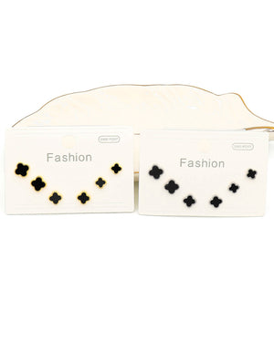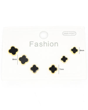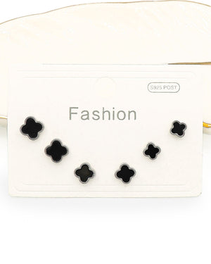 Set triple trébol negro, tiene baño de rodio e incluye 3 pares.