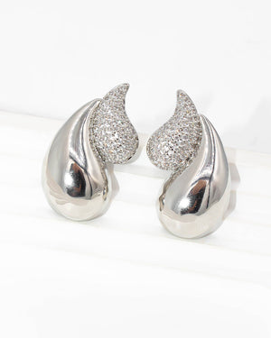 Topo doble gota plateado con circones, tiene baño de rodio e incluye 1 par.