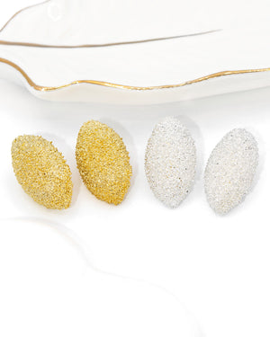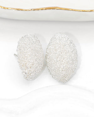 Topo ovalado escarchado, tiene baño de rodio e incluye 1 par.