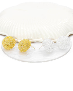 Topo escarchado redondo, tiene baño de rodio e incluye 1 par.
