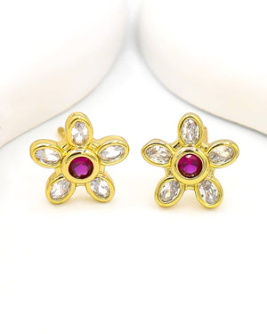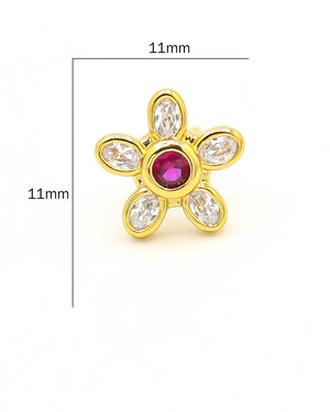 Topo flor con circones, tiene baño de rodio e incluye 1 unidad