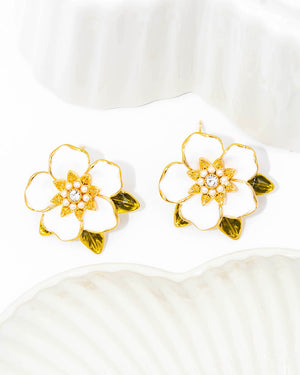 Topo flor blanca, tiene baño de rodio, incluye 1 unidad.