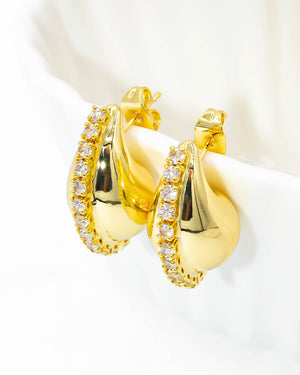 Topo gota pequeña con circones en linea, tiene baño de rodio e incluye 1 par.